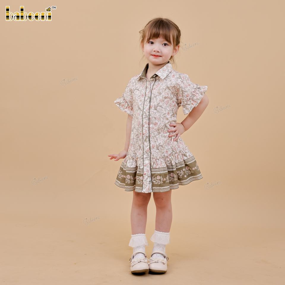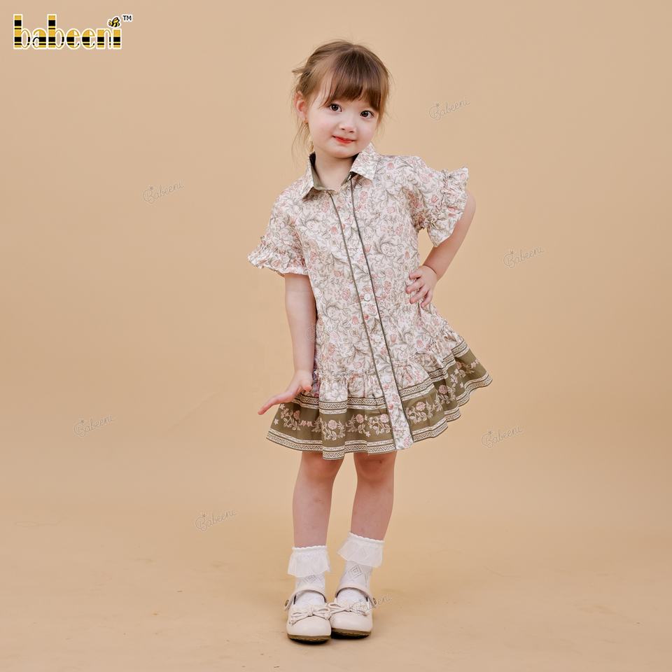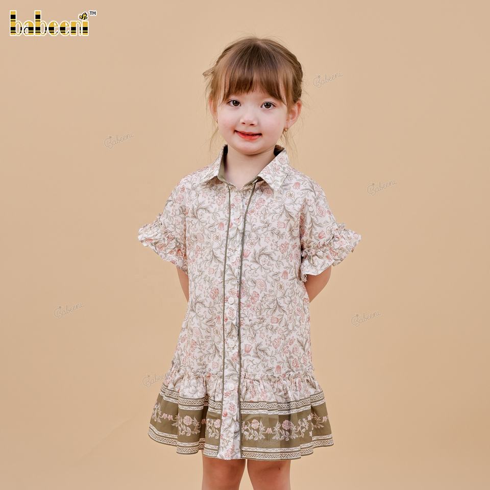 ชุดเดรสทรงเอลายดอกไม้สำหรับเด็ก ผ้าฝ้าย 100% ตกแต่งด้วยมือแบบสม็อค เป็นมิตรกับสิ่งแวดล้อม ODM - DR4535