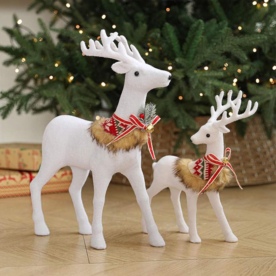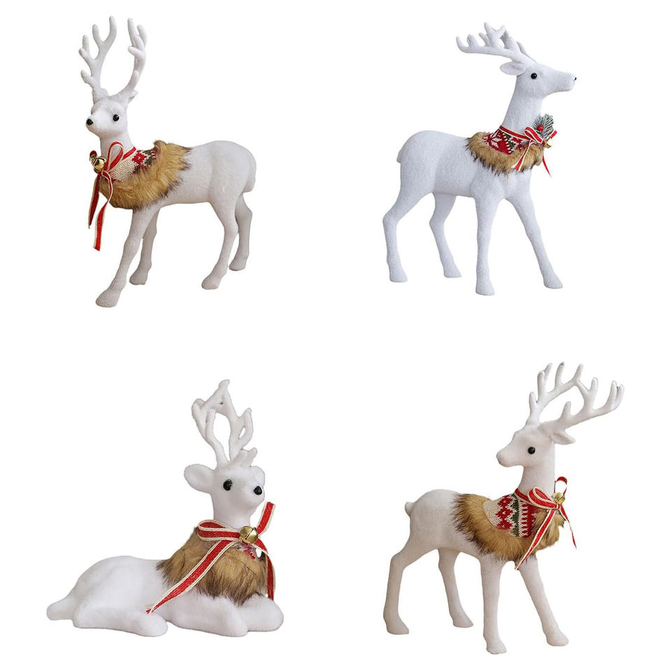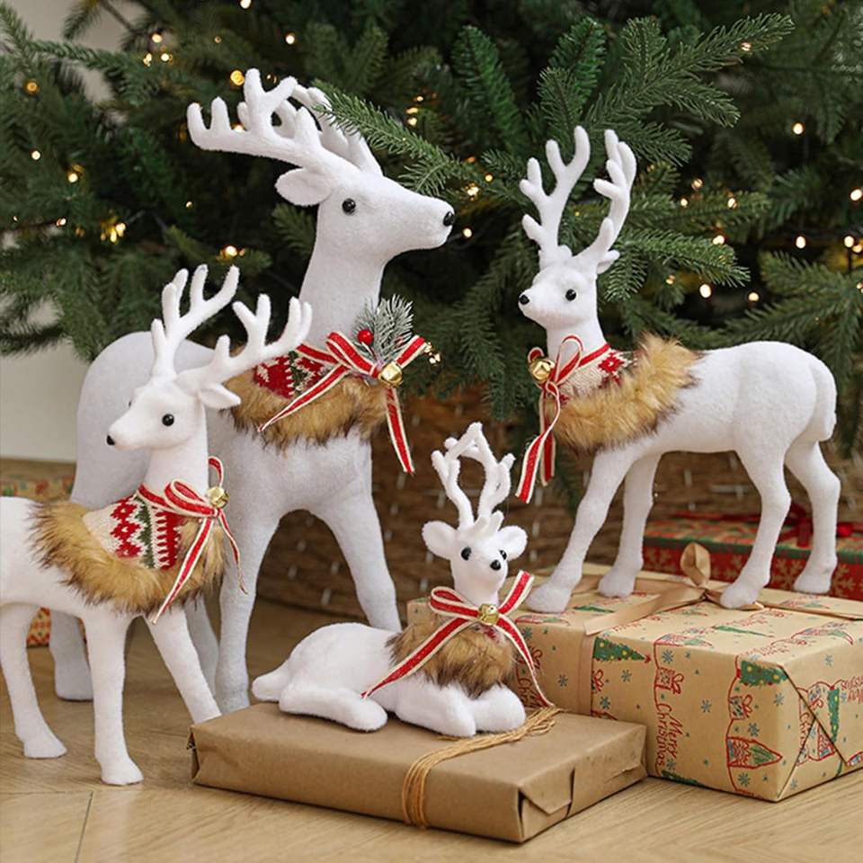 Classic Gifts Xmas Winter Deer Table Ornaments Holiday Deer Table Decor Christmas Elk Figurines White Christmas Reindeer