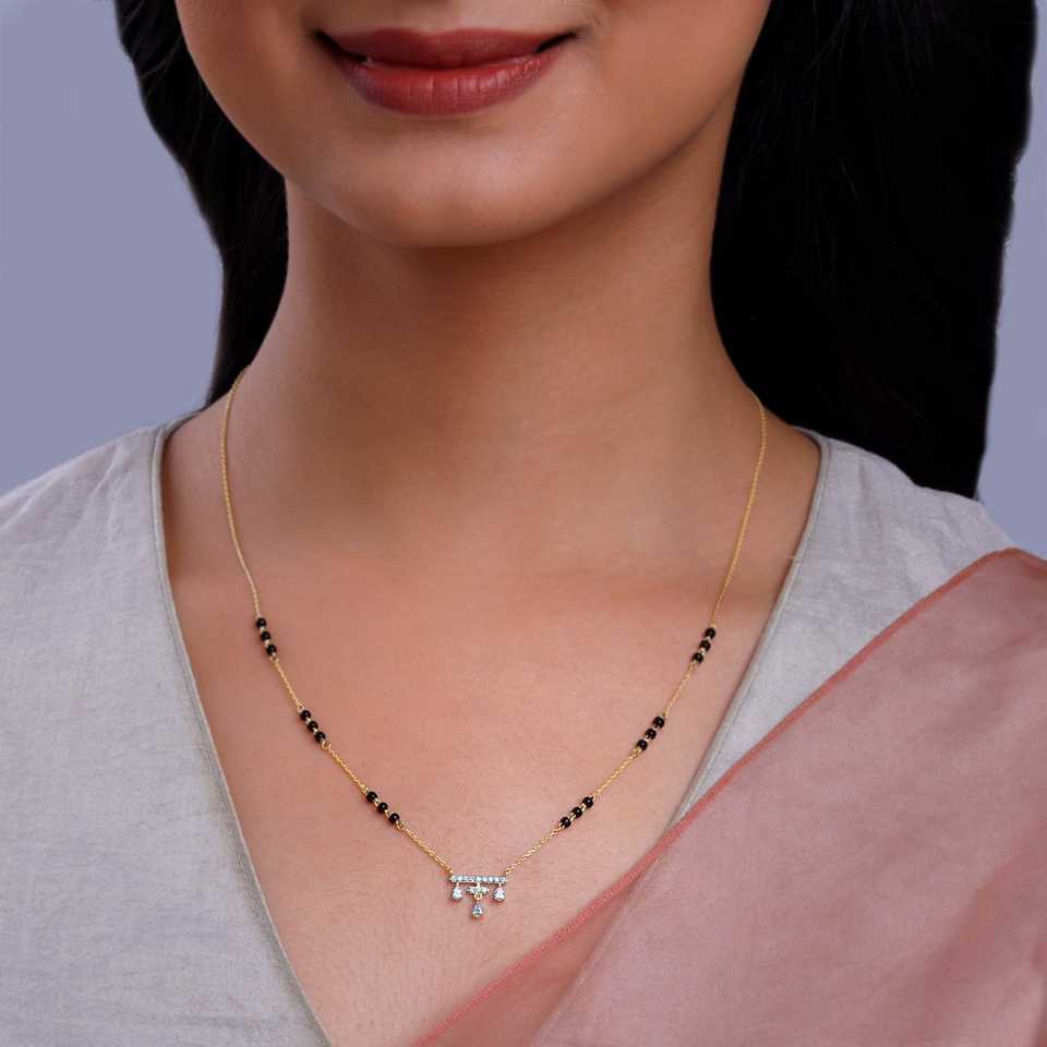 สร้อยคอ mangalutra ประดับเพชรสีทองคลาสสิก Navili vadhu เครื่องประดับที่ดีที่ผสมผสานการออกแบบที่ทันสมัยกับเสน่ห์งานแต่งงานแบบดั้งเดิม