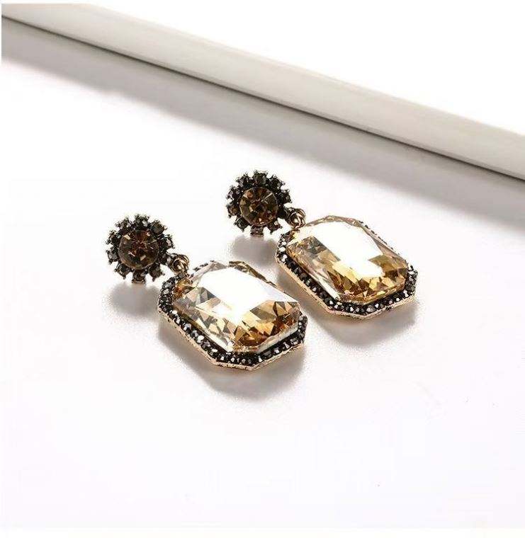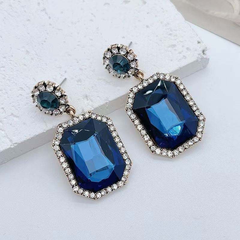 Classic Gold Plated Crystal Square Shape Multi Colors Rhinestone Geometric Stud Earrings Women's Christian Luxury Wedding