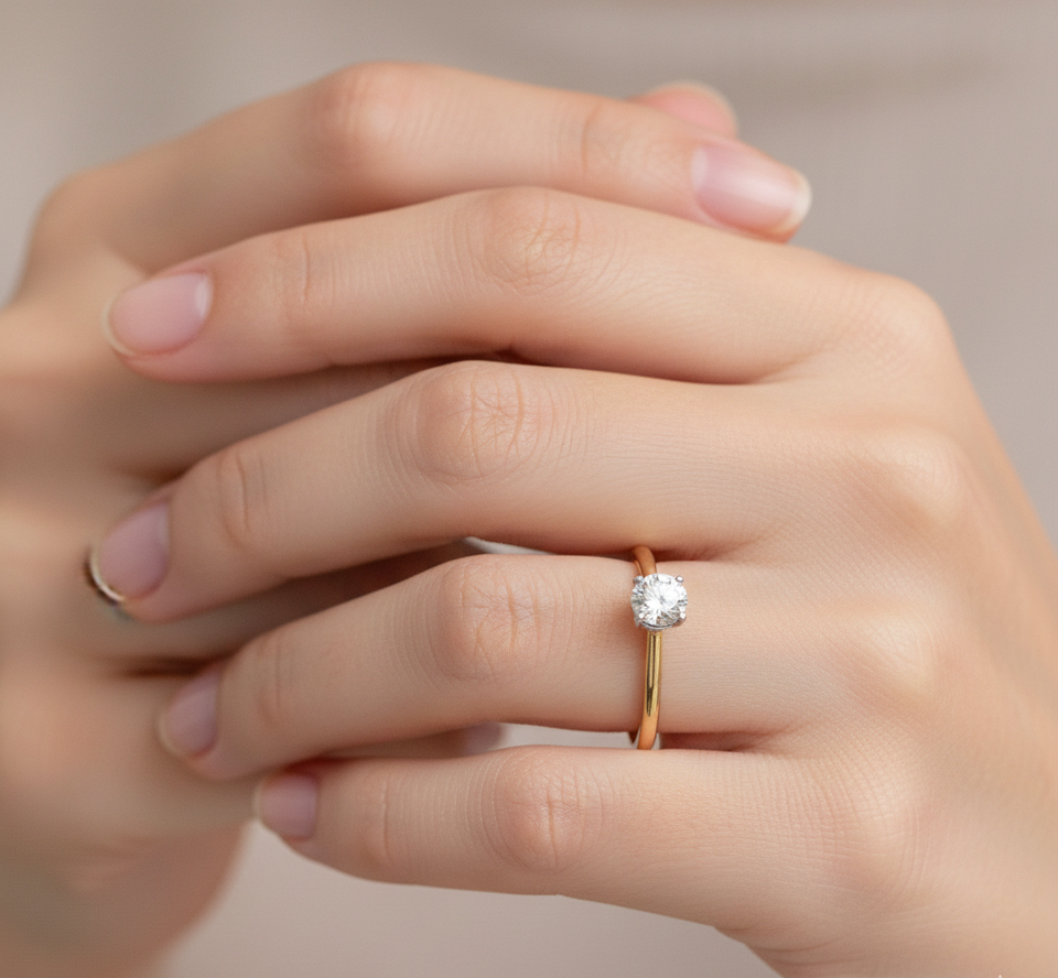 แหวนหมั้นเพชรโมอิสซาไนต์ทรงกลมแบบคลาสสิก