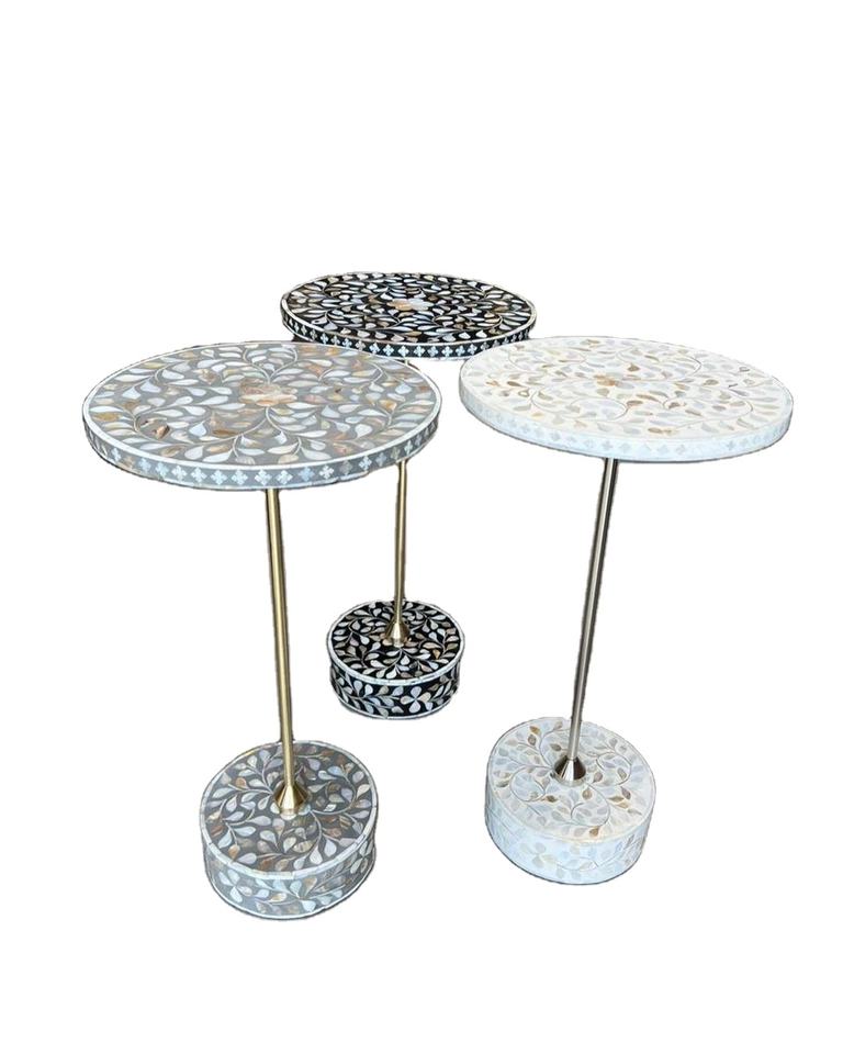 โต๊ะฝังมุกลายดอกไม้หรูหราโต๊ะข้างสำหรับห้องนอนคลาสสิกและห้องนั่งเล่น