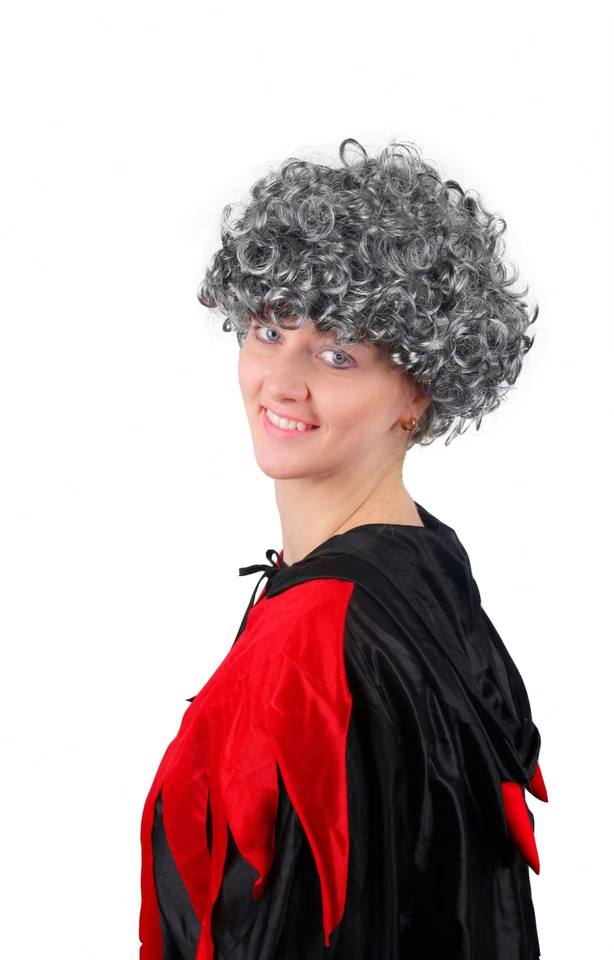 วิกผมสังเคราะห์แบบหยิกสีเทาคลาสสิกที่มีสไตล์การดัดผมแน่นและเส้นผมก่อนดึงออกมาเพื่อเพิ่มความสมจริงและสวมใส่สบาย