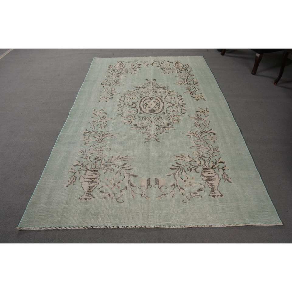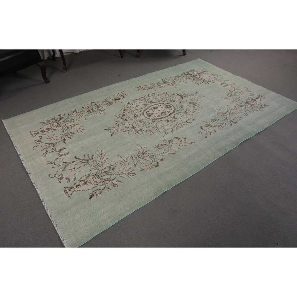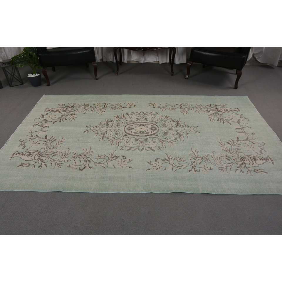 พรมขนสัตว์ลายเย็บปะสีเขียวเบจสีเขียวคลาสสิกขนาด4.9x8.3ฟุตสไตล์ตุรกี Aubusson ดีไซน์สำหรับห้องนั่งเล่นข้างเตียงห้องโถงยางพาราสี่เหลี่ยมผืนผ้า