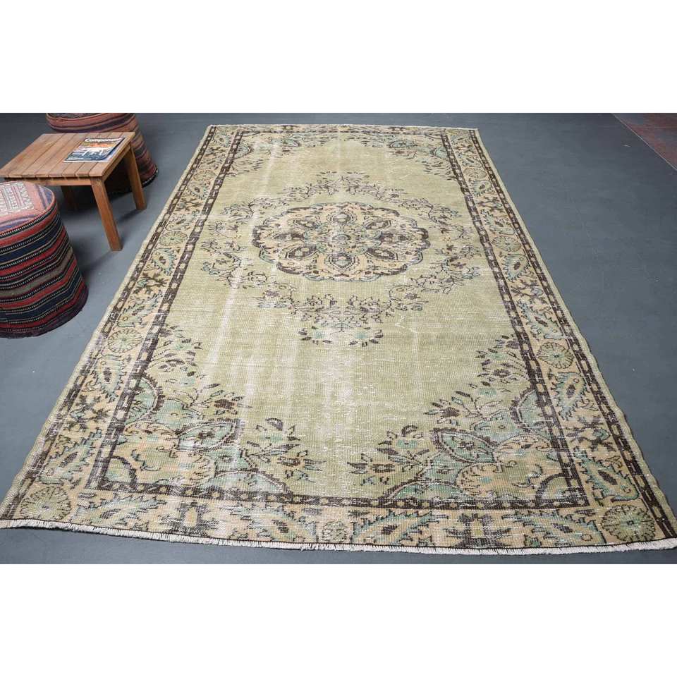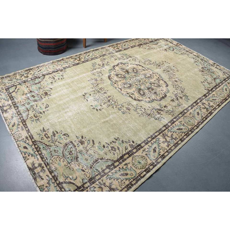 พรมขนสัตว์สีเบจสีเขียวคลาสสิกขนาด6.1x9.8ฟุตทรงสี่เหลี่ยมปะต่อสูง10มม. ทำจากยางใหม่