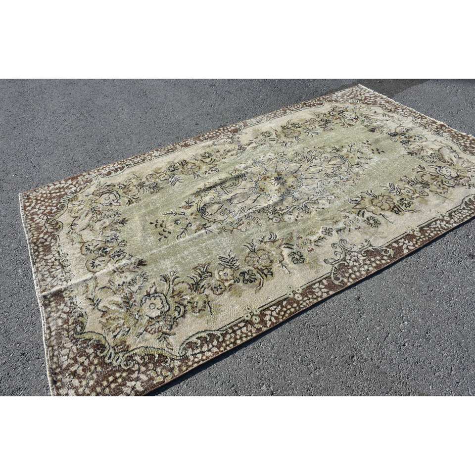 พรมขนแกะสไตล์ตุรกีโบราณ5x8ft สีน้ำตาลสีเขียวคลาสสิกลายฮาลีแบบเย็บปะติดขนาดใหญ่พร้อมแผ่นรองทำจากยางสำหรับโถงทางเดินในห้องวัยรุ่น