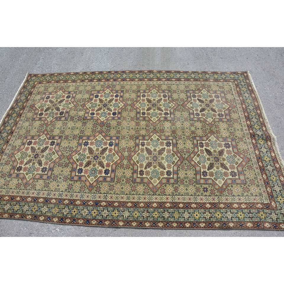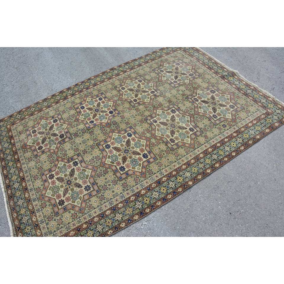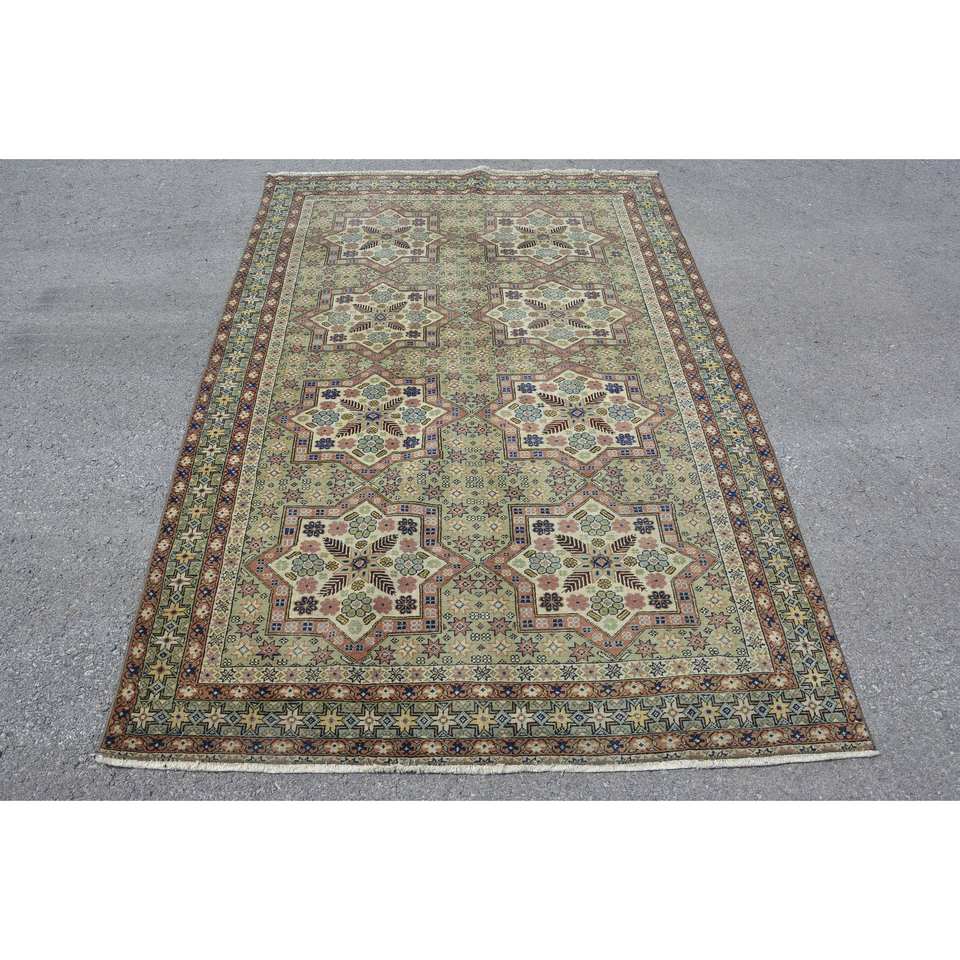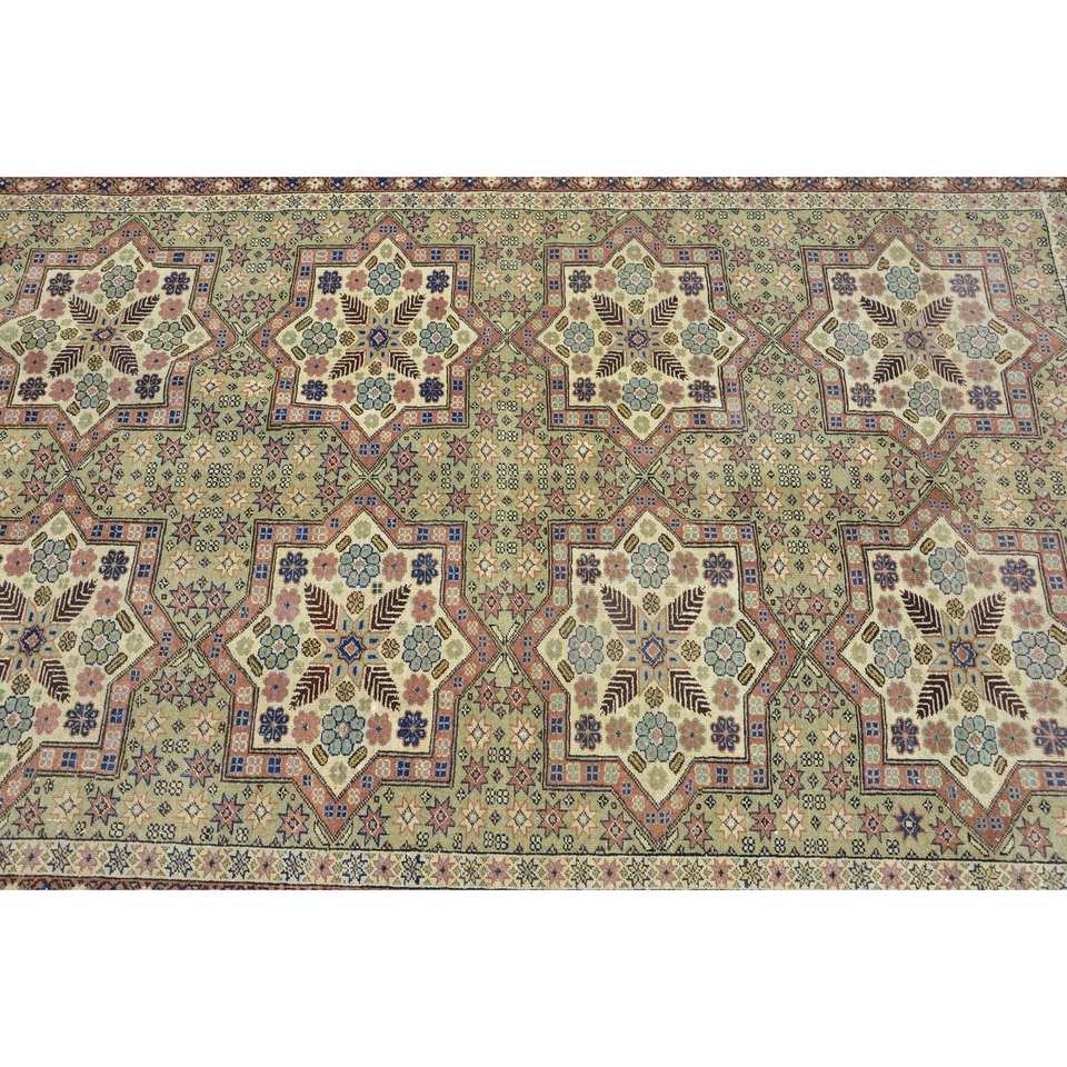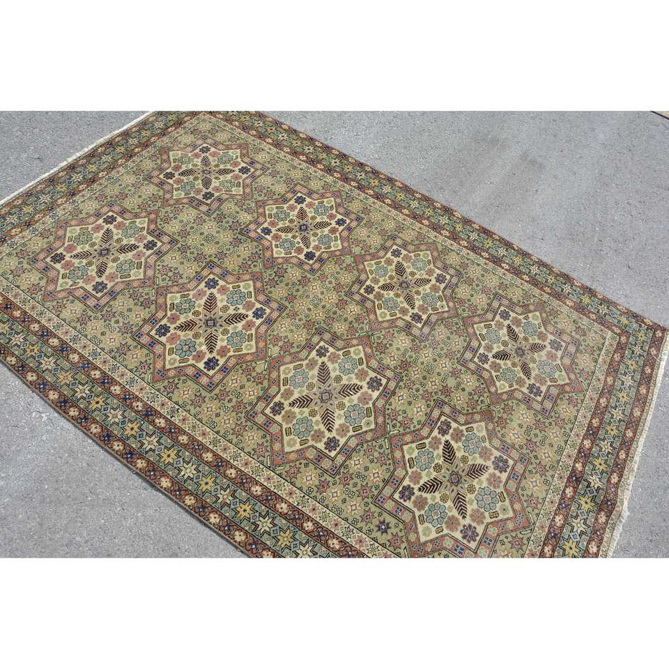 พรมหญ้าทะเลขนสัตว์แนวเทอร์คูเนลสีเขียวสไตล์วินเทจขนาด4.3x6.7ฟุตพร้อมแผ่นยางรองสำหรับห้องนั่งเล่นบ้านวัยรุ่น