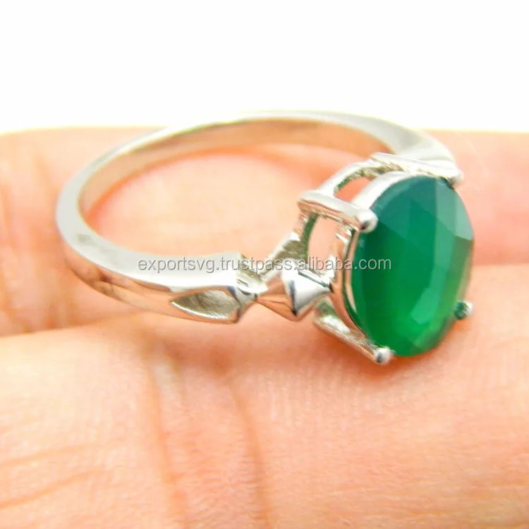 แหวนแต่งงานและหมั้นสำหรับผู้หญิง ประดับพลอยออนิกซ์สีเขียวคลาสสิก 2.35 กะรัต เงินแท้ 925