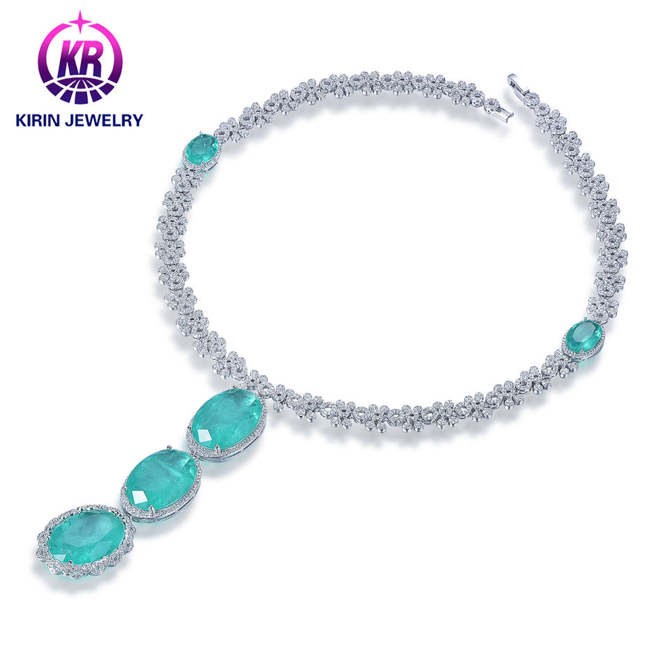 สร้อยคอพร้อมจี้อัญมณีสีเขียวไข่มุกคลาสสิกพร้อมโซ่ยาวคาดอกสุดเซ็กซี่ของผู้หญิงเครื่องประดับชุบทองสวยงามแบบย้อนยุคผลิตภัณฑ์ใหม่