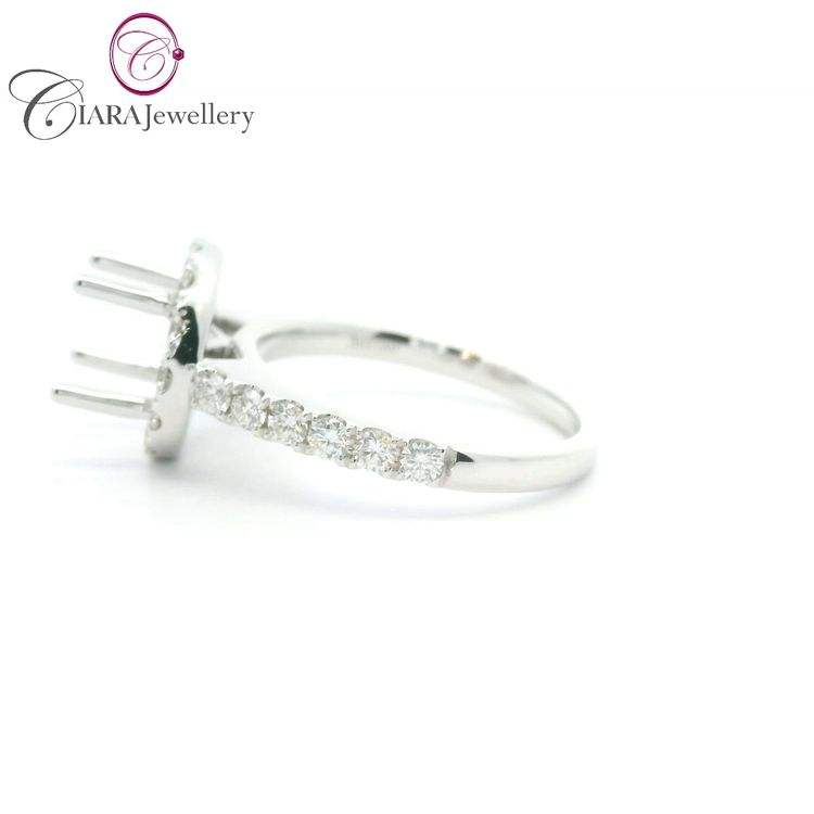 แหวนเพชรธรรมชาติรัศมี7มม. แบบคลาสสิก AU750ทองคำขาว18K สำหรับงานแต่งงานและงานเลี้ยง