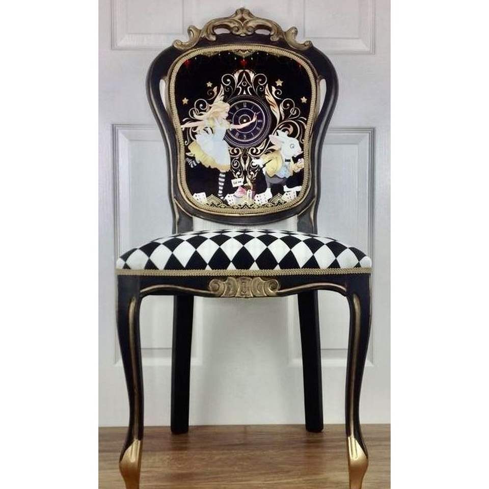 Victorian Era Whimsical Dining Chair Black Gold Wood Fabric