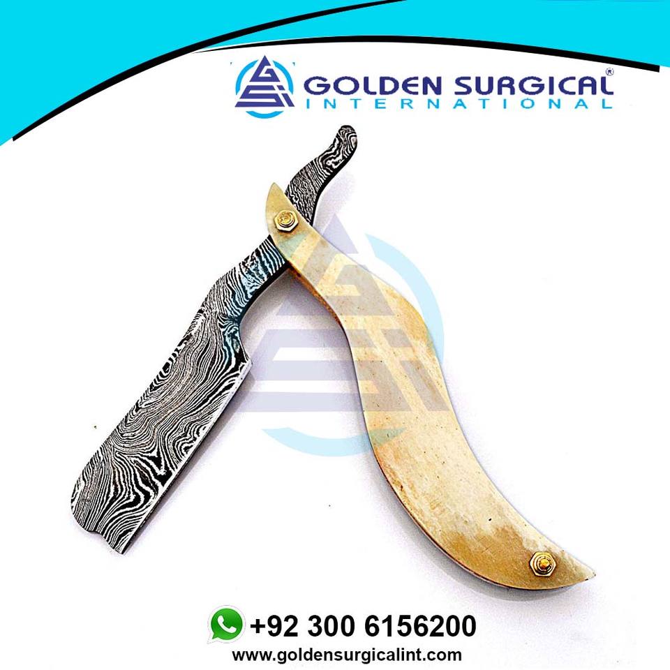 มีดโกนหนวดแบบพับได้ ทำจากเหล็กดามัสกัส งานแฮนด์เมด พร้อมใบมีดโกนคมสำหรับช่างตัดผม