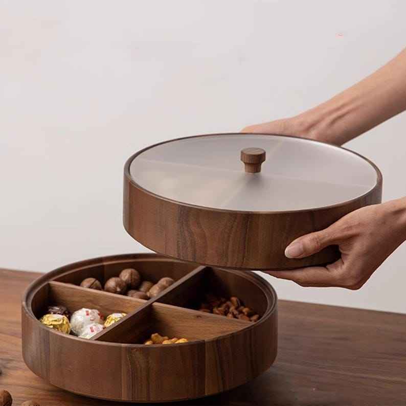 กล่องไม้ทำมือสุดคลาสสิกสำหรับใส่ผลไม้อบแห้ง ดีไซน์หรูหราทันสมัย พร้อมฝาปิดและดีเทลตกแต่ง เหมาะสำหรับเป็นของขวัญแบบอินเดียดั้งเดิม