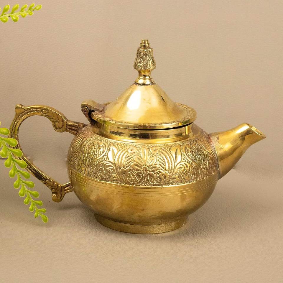 กาต้มน้ำทองเหลืองแท้ทำมือแบบคลาสสิก หม้อเสิร์ฟชาและกาแฟแบบอินเดียดั้งเดิม เหมาะสำหรับผู้ซื้อทั่วโลก