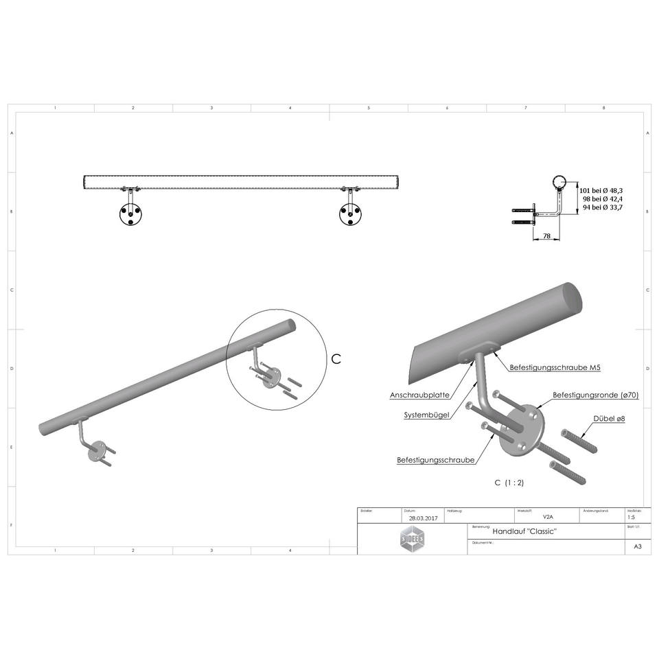 ราวจับแบบคลาสสิกสำหรับราวบันไดและราวจับ