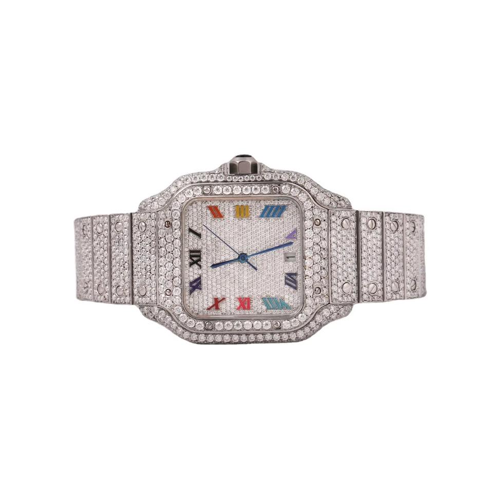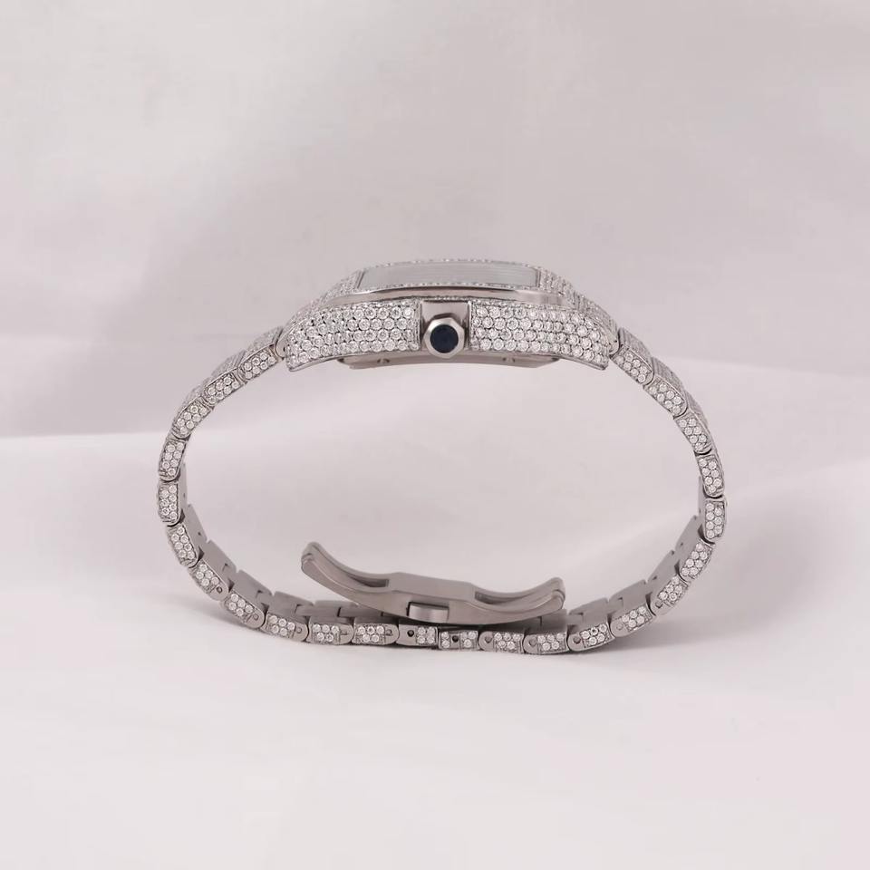 นาฬิกาข้อมืออัตโนมัติสุดหรูสไตล์ฮิปฮอปคลาสสิกสำหรับผู้ชาย ประดับเพชรโมอิสซาไนต์ VVS ใหม่ ผลิตในอินเดีย ระบบควอตซ์