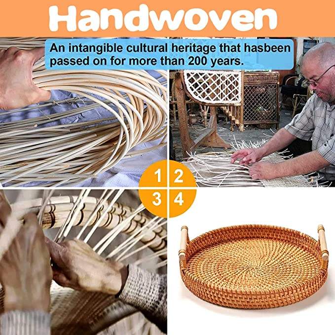 ตกแต่งบ้านคลาสสิกผลิตในอินเดียคุณภาพสูงโรงแรมร้านอาหารอุปกรณ์ Handทอถาดหวายง่ายพกพาและเสิร์ฟ