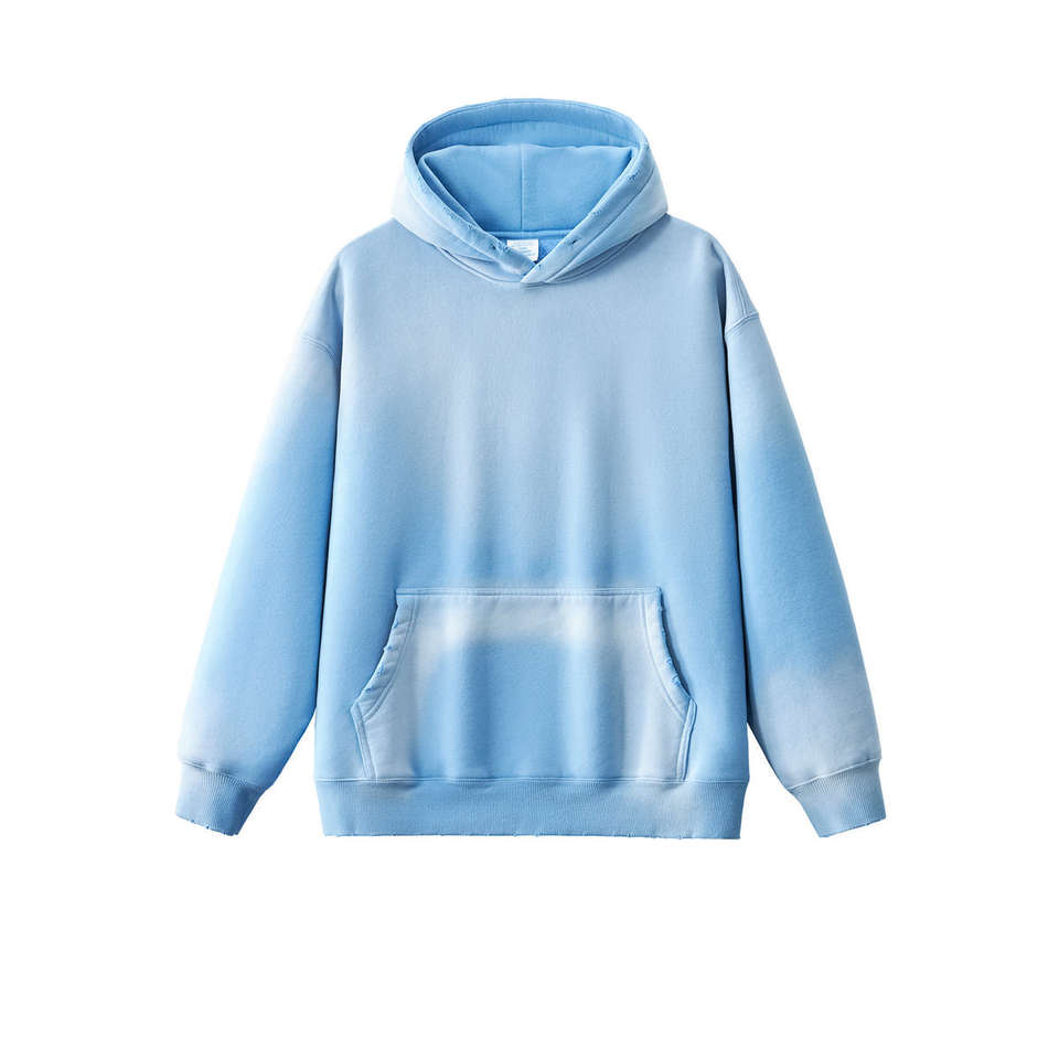เสื้อฮู้ดดี้คลาสสิค ผ้าฝ้าย/โพลีเอสเตอร์ สั่งทำได้ ใส่ได้ทั้งชายและหญิง ไม่หด ไม่เป็นขุย ทรงหลวม สไตล์ดิสเทรส ซักแบบ Stone Wash สีซีดจางแบบ Sun Fade ขายส่ง