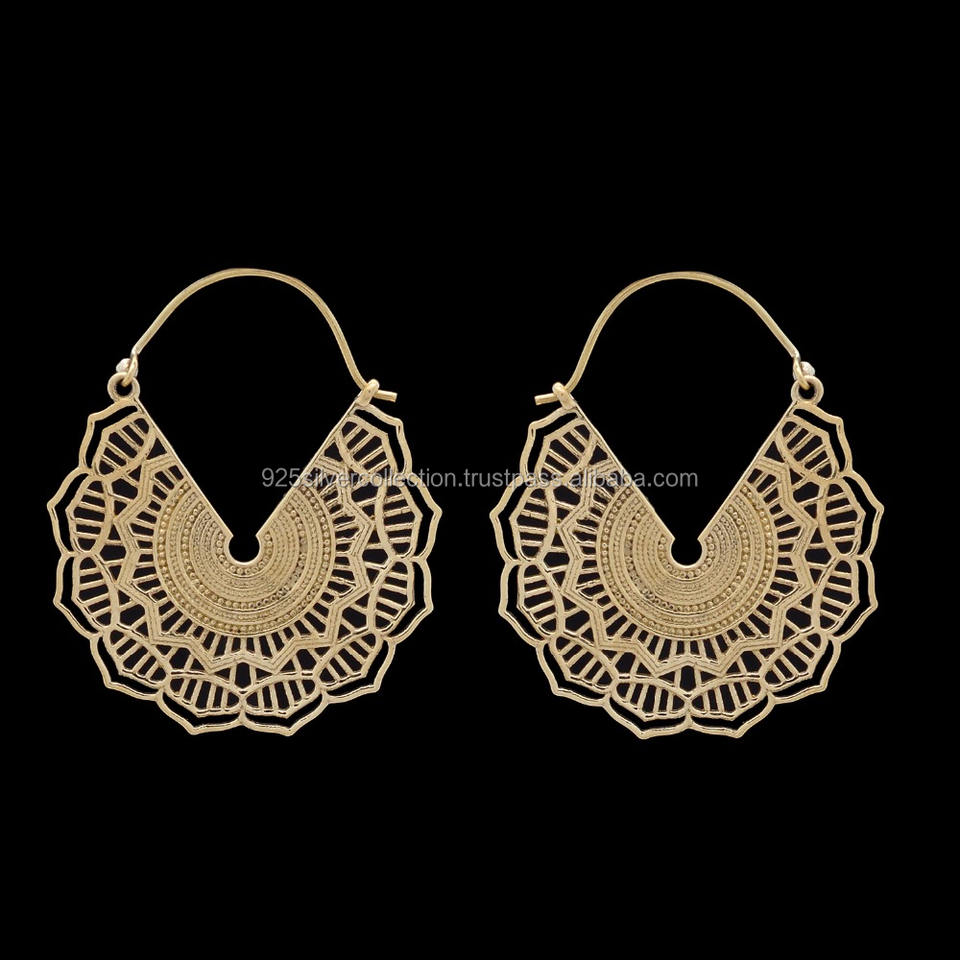 ต่างหูห่วงทองเหลืองอินเดียแบบคลาสสิก ดีไซน์วินเทจ สำหรับเครื่องประดับวันครบรอบเด็ก