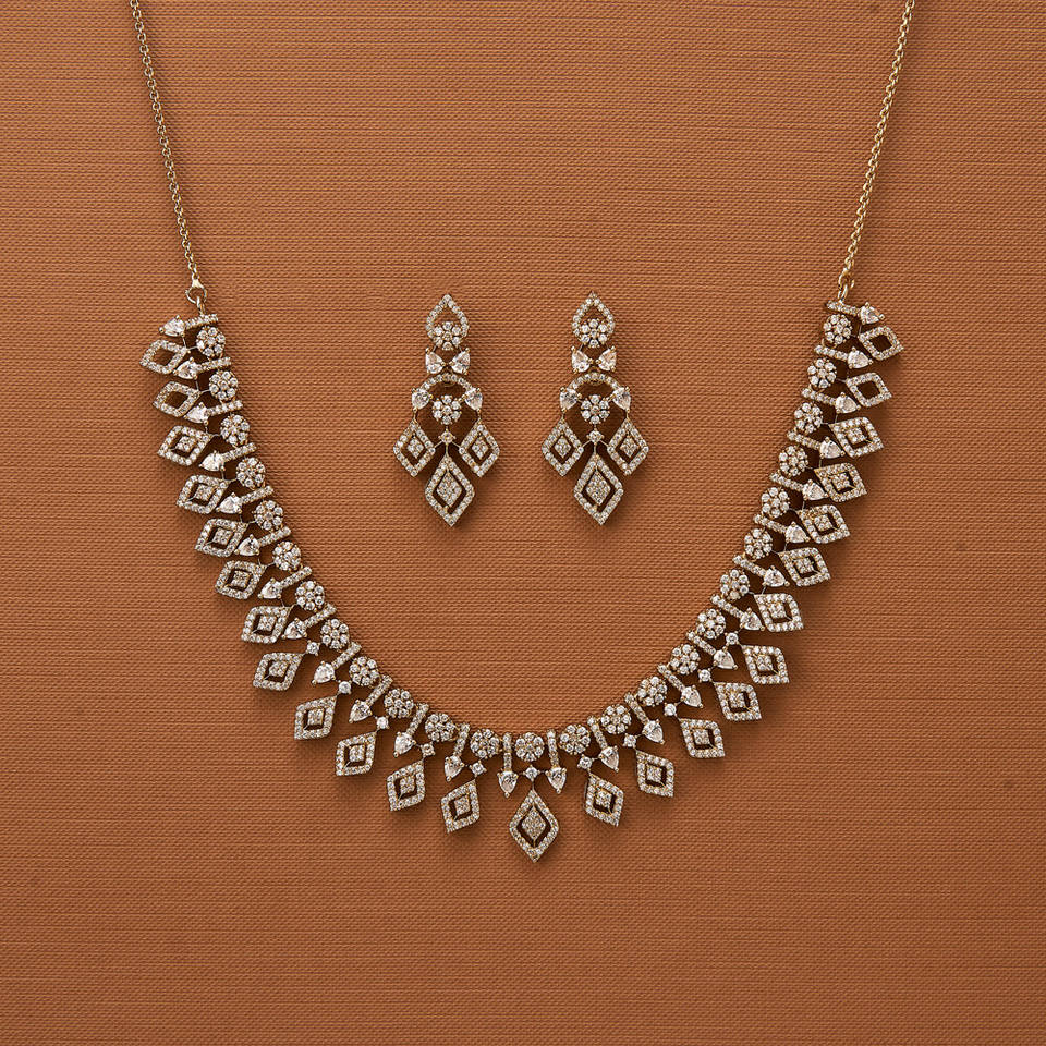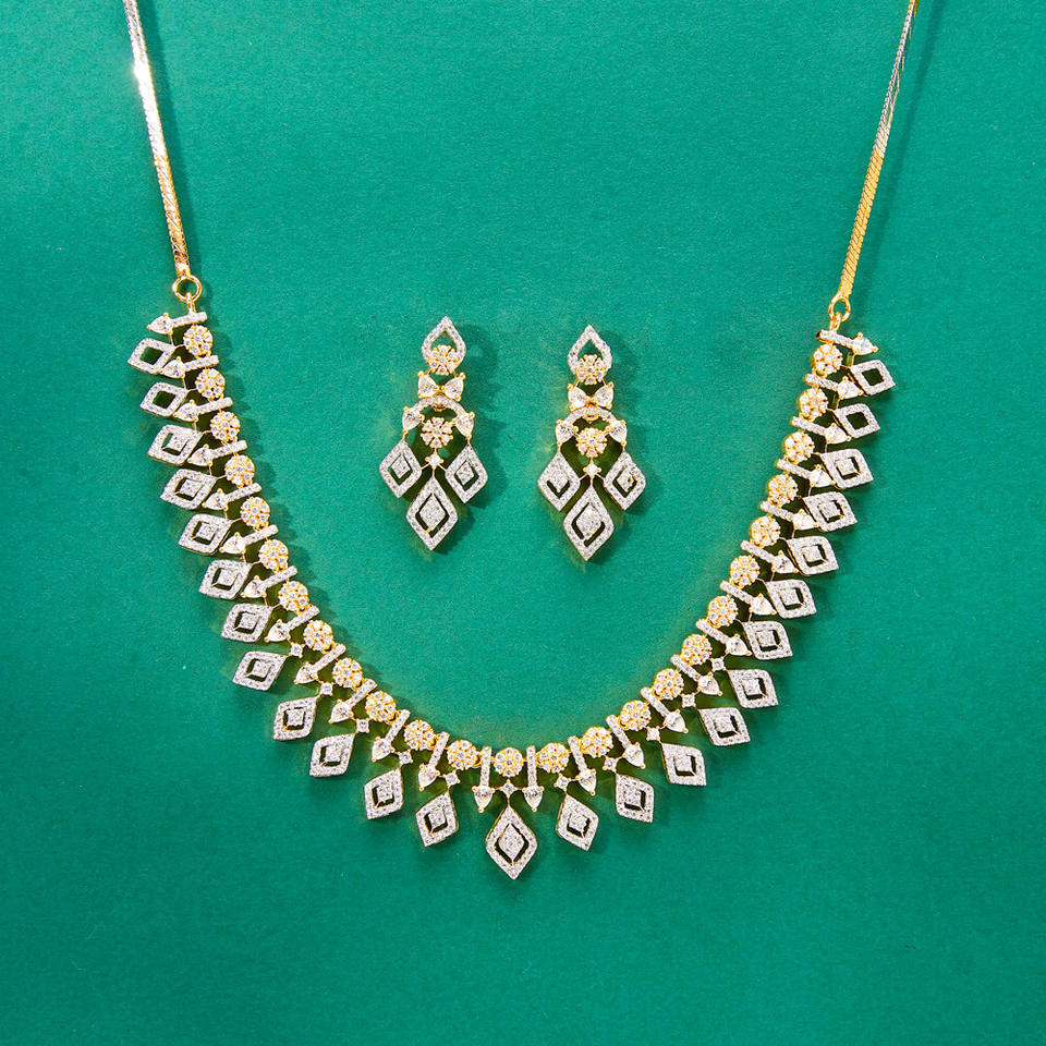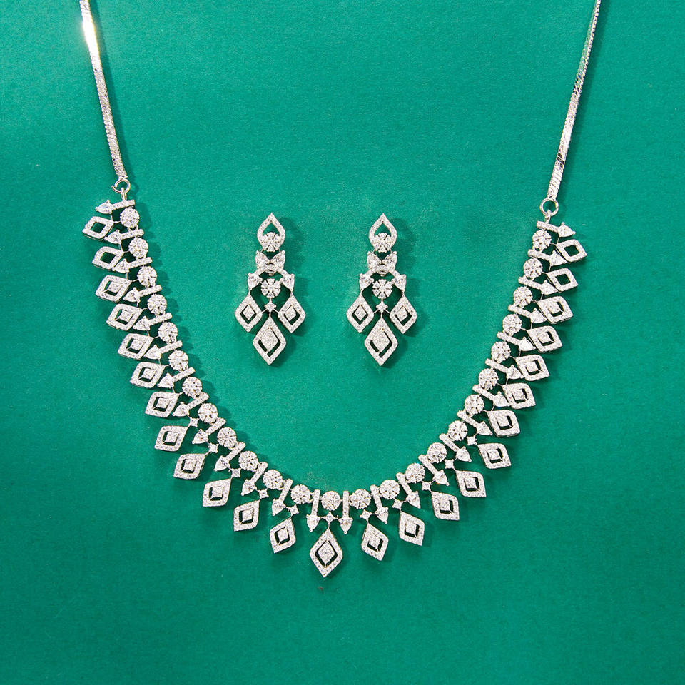 สร้อยคอแฟชั่นอินเดียคลาสสิกพร้อมเซอร์โคเนียทรงลูกบาศก์และชุบโรเดียม2โทนสำหรับ Mehndi ส่งออกโดยอัญมณีชั้นนำ