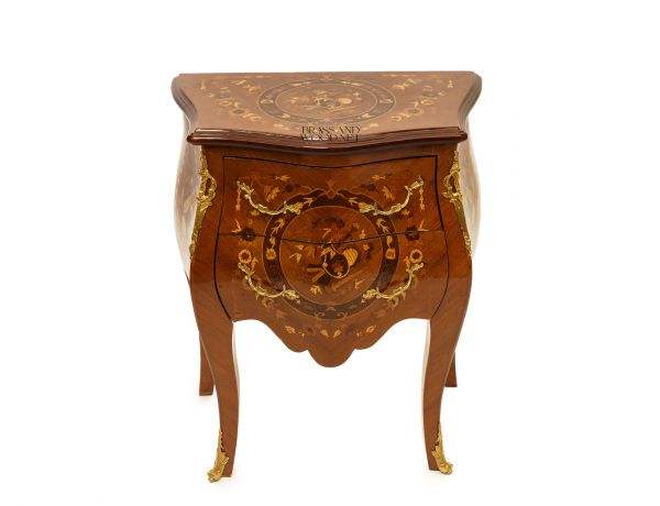 ตู้คอนโซลไม้แบบฝังลายคลาสสิก ดีไซน์โค้งมน พร้อมรายละเอียดตกแต่งด้วยทองเหลือง หรูหราและสง่างาม