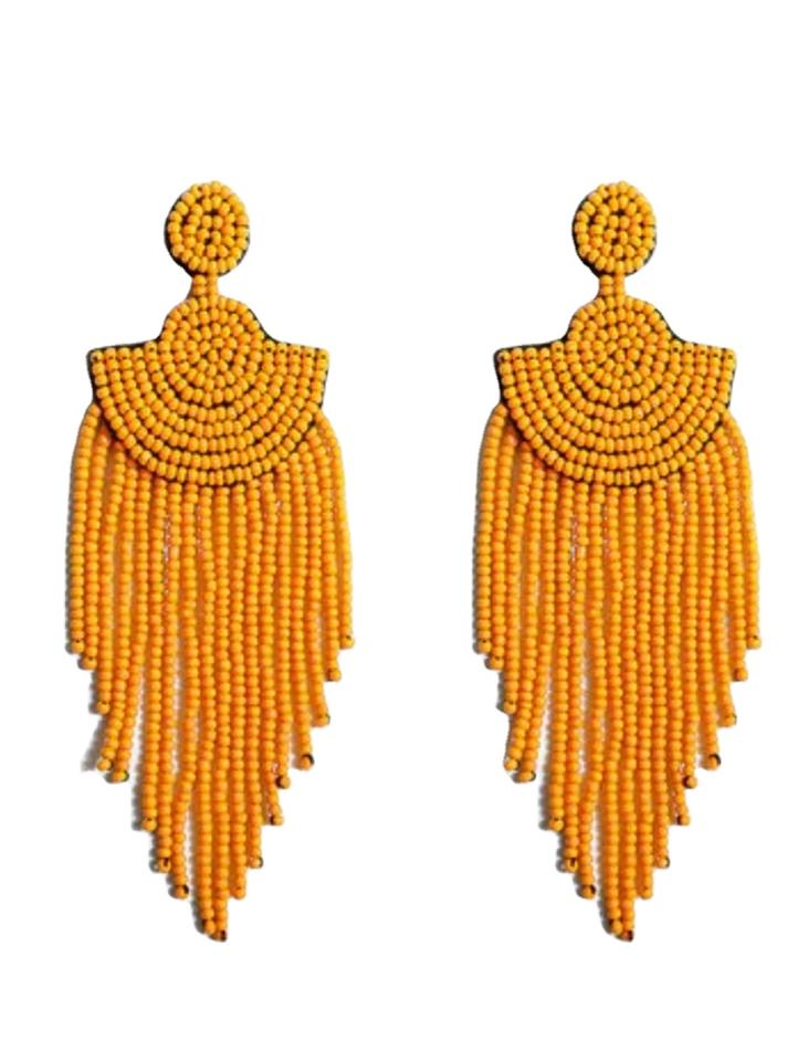 ต่างหูห้อยลูกปัดหลากสีสีสีงาช้างคลาสสิกสไตล์ยาว
