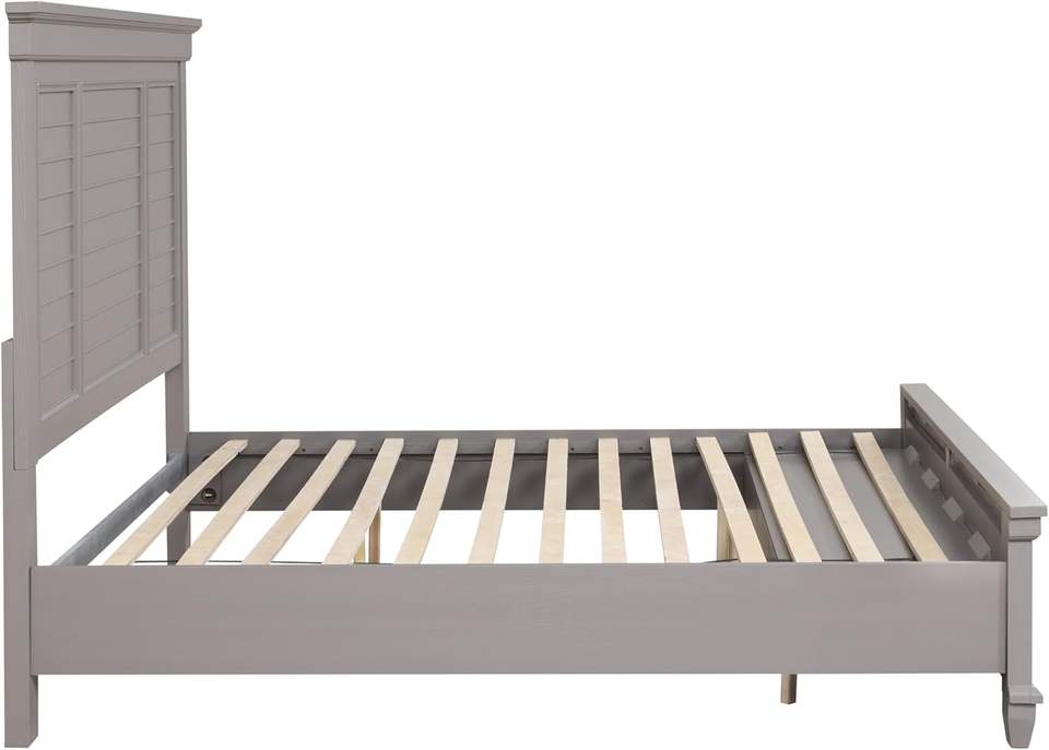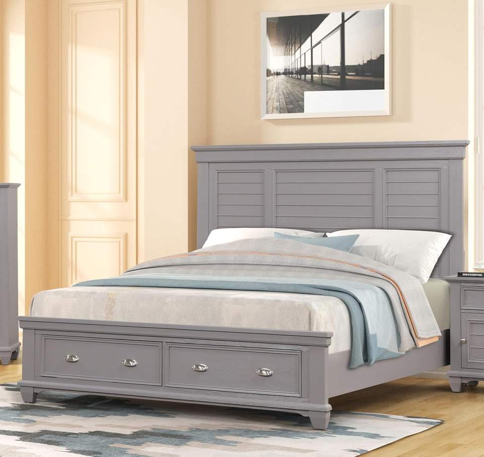 เตียงคิงไซส์ทำจากไม้เจมส์ทาวน์คลาสสิกพื้นที่เก็บของหรูหราเตียงไม้เนื้อแข็งสีเทาหรูหราเตียงไม้ที่ซ่อนอยู่