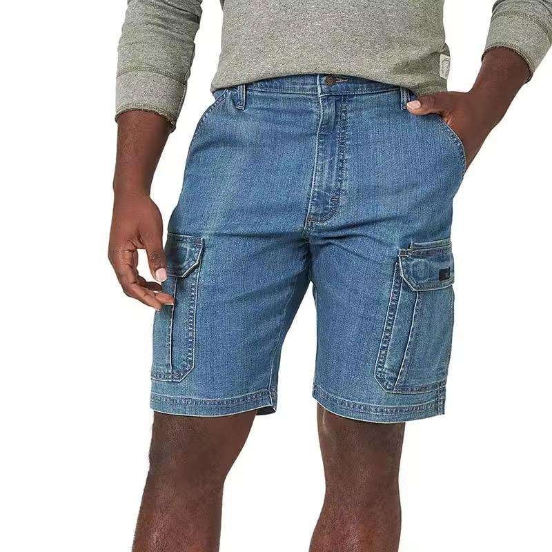 กางเกงยีนส์คลาสสิก กางเกงขาสั้นเดนิมสำหรับผู้ชาย คุณภาพสูง สไตล์สตรีท สีฟ้าอ่อน ใส่สบายๆ ในฤดูร้อน