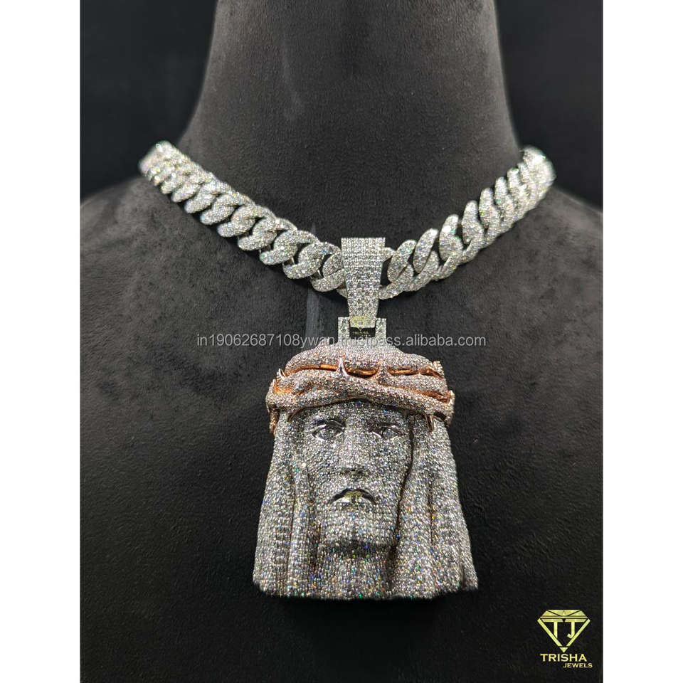 จี้พระเยซูคลาสสิก ประดับเพชรโมอิสซาไนต์ VVS เต็มตัว พร้อมตัวเรือนเงินแท้ 925 ดีไซน์หรูหราจาก Trisha Jewels