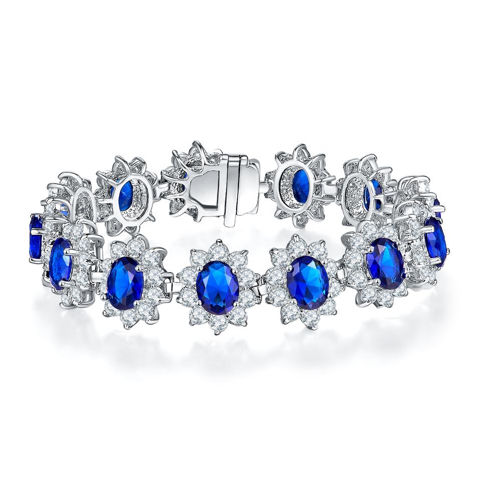 สร้อยข้อมือ CZ ของขวัญวันเกิดเครื่องประดับสีฟ้าคลาสสิก