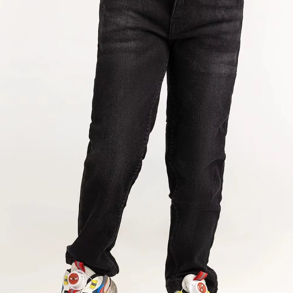 กางเกงยีนส์คลาสสิกสำหรับเด็กผู้ชายกางเกงยีนส์ผ้ายืดสำหรับใส่ไปโรงเรียนแบบลำลองทุกวัน