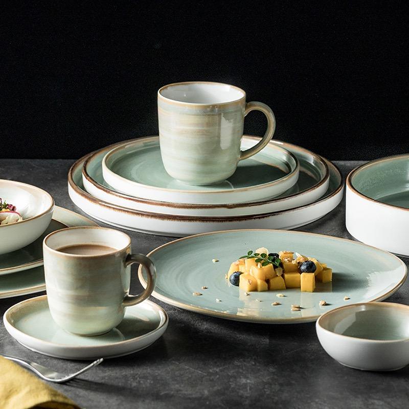 เซรามิกเคลือบลายคลาสสิกสีเขียว ดีไซน์เฉพาะตัว ทนทาน เป็นมิตรกับสิ่งแวดล้อม ปลอดสาร BPA ใช้กับไมโครเวฟได้