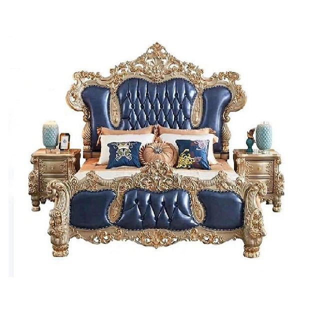 เตียงคิงไซส์คลาสสิกพร้อมโต๊ะข้างเตียง,ชุดเฟอร์นิเจอร์โบราณสำหรับห้องนอนรอยัลอิตาลีชุดเฟอร์นิเจอร์ไม้แกะสลักขนาดคิงไซส์