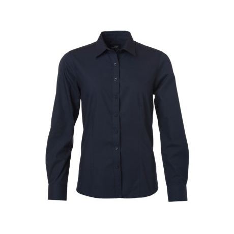 Classic Ladies' Longsleeved Poplin Shirt in XS XL Sizes Easy-Care Blended Fabric Stand Collar with Lace Decoration for Office