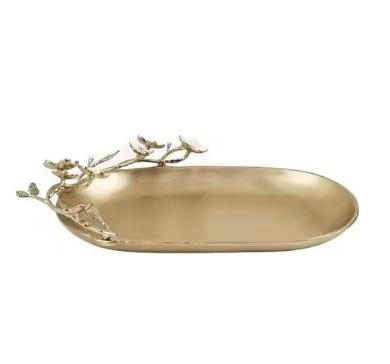 ถาดโลหะอะลูมิเนียมดีไซน์คลาสสิกถาดเสิร์ฟอาหารโลหะสำหรับตกแต่งบ้านหรูหราทันสมัยดีไซน์รูปใบไม้