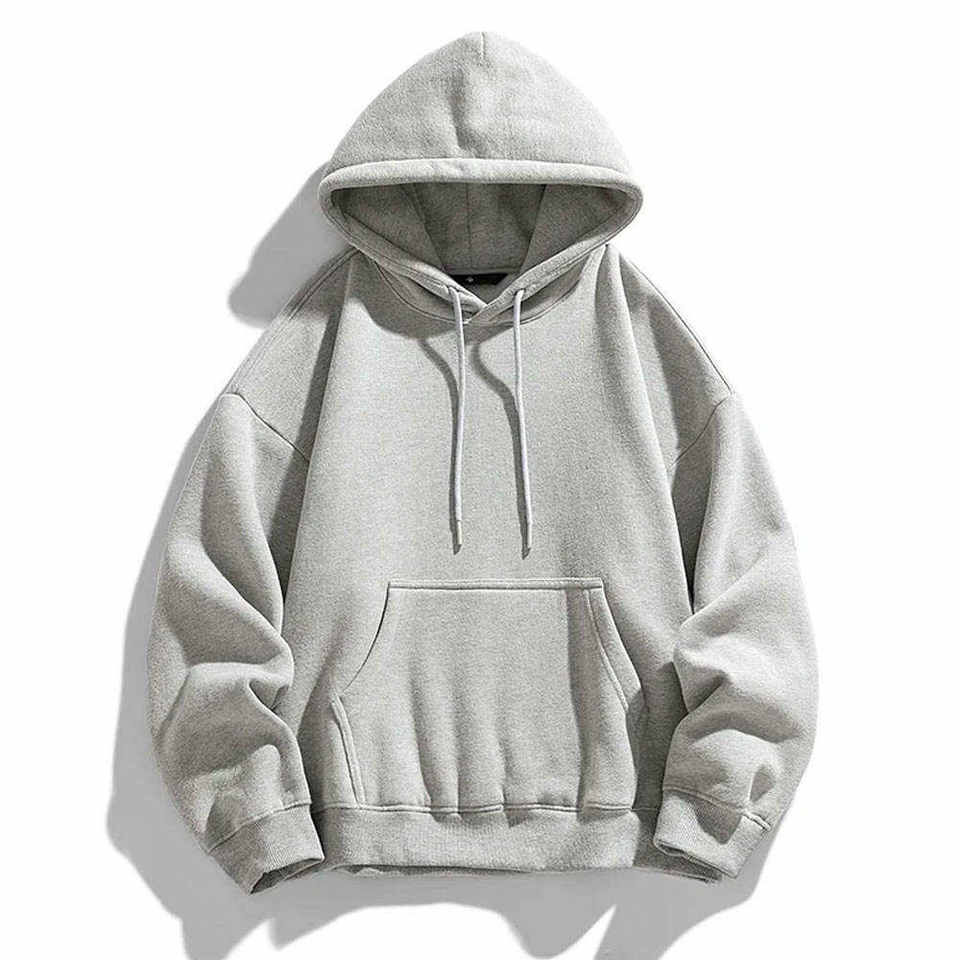 เสื้อฮู้ดแบบสวมหัวสีเทาอ่อนเสื้อสเวตเชิ้ตผสมผ้าฝ้ายพรีเมียมพร้อมกระเป๋าด้านหน้าสำหรับผู้ชายและผู้หญิงไซส์ใหญ่พิเศษแบบคลาสสิก