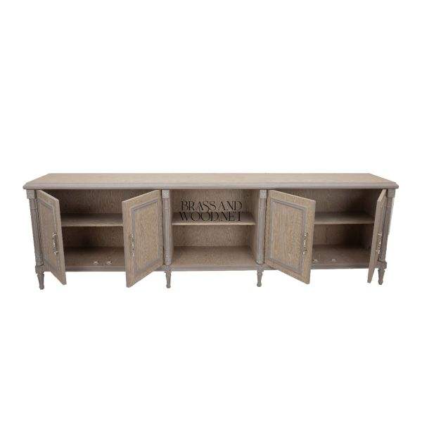 ตู้วางทีวีไม้สีอ่อนสไตล์คลาสสิกพร้อมตู้เก็บของ