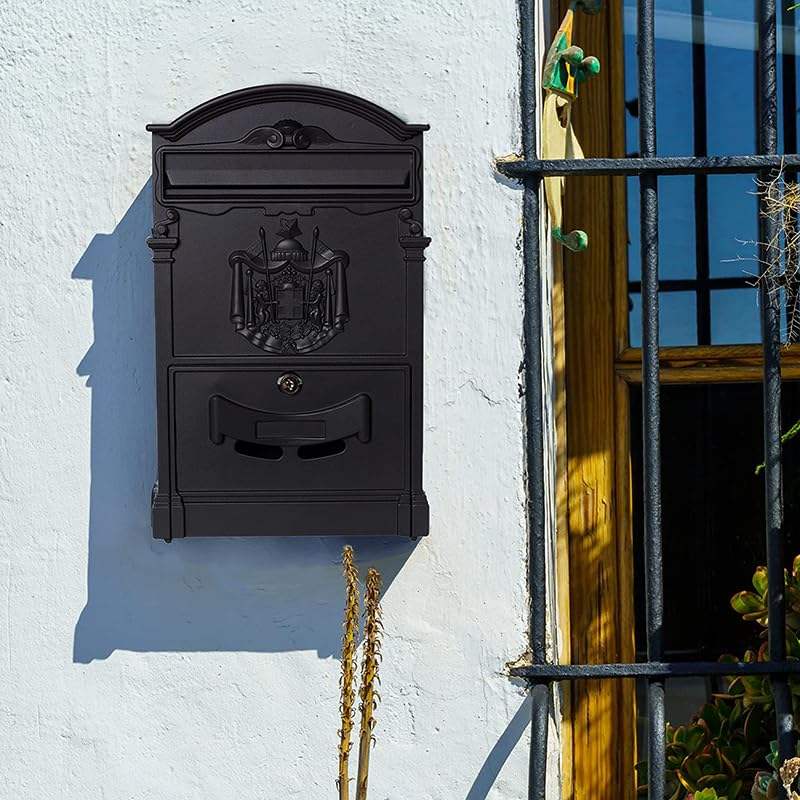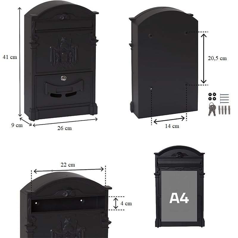 ตู้จดหมายโลหะแบบคลาสสิค26X9X41ซม. กล่องจดหมายอลูมิเนียมสีดำกลางแจ้งของตกแต่งบ้าน