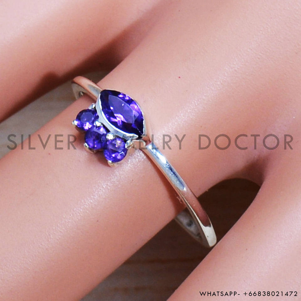 แหวนเงินแท้ 925 ดีไซน์คลาสสิค ประดับพลอยอะมีทิสต์ทรงเหลี่ยม ขายส่งจำนวนมาก เครื่องประดับคุณภาพสูง แหวนพลอยประจำเดือนเกิด ทำมือ สำหรับผู้หญิง ของขวัญจากผู้ผลิต