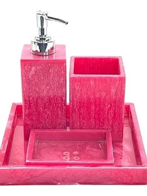 ชุดอุปกรณ์ห้องน้ำเรซิ่นอีพ็อกซี่ดีไซน์คลาสสิก 4 ชิ้น สำหรับใช้ในบ้าน ประกอบด้วยที่จ่ายสบู่ ที่วางแปรงสีฟัน ถาดวางของในห้องน้ำ ราคาประหยัด