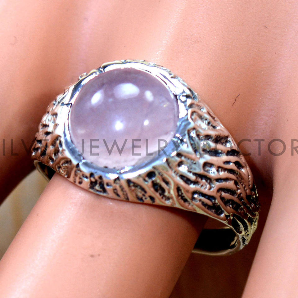 แหวนเงินแท้ 925 ประดับโรสควอตซ์ธรรมชาติสำหรับผู้หญิง ดีไซน์วิคตอเรียนย้อนยุคสุดเก๋ เครื่องประดับอินเทรนด์
