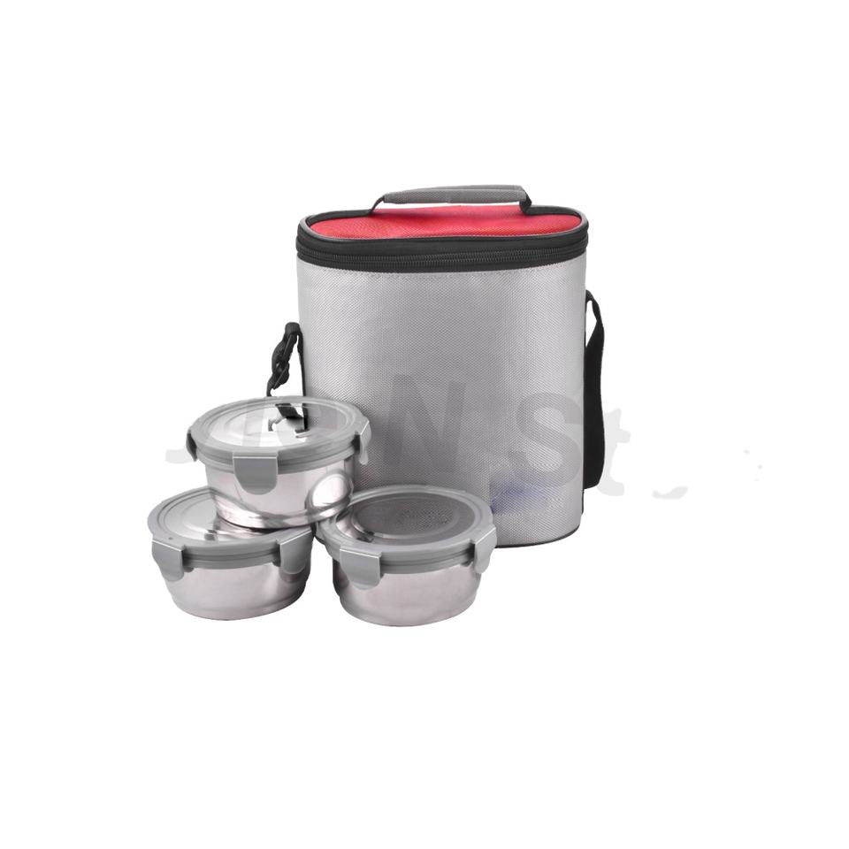กล่องอาหารกลางวันมัฟฟินสุดหรูคลาสสิกพร้อมฝาพลาสติกชุดจานชามสแตนเลสสำหรับมื้อกลางวันและมื้อค่ำ