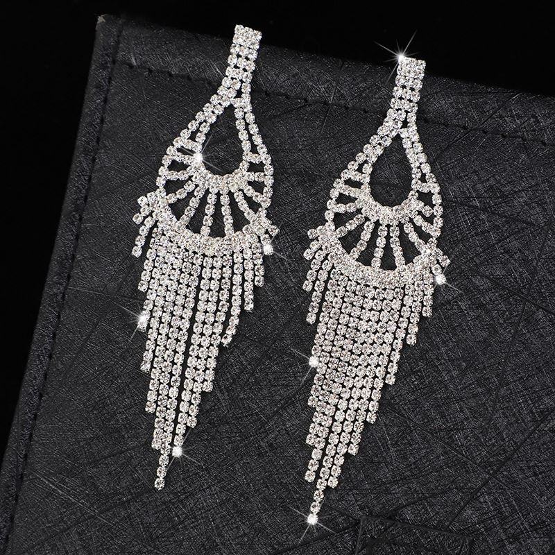 ต่างหูระย้าทรงหยดน้ำประดับคริสตัลหรูหราคลาสสิกสำหรับผู้หญิง