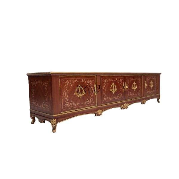 ตู้วางทีวีไม้สุดหรูสไตล์คลาสสิกพร้อมรายละเอียดงานฝีมือ