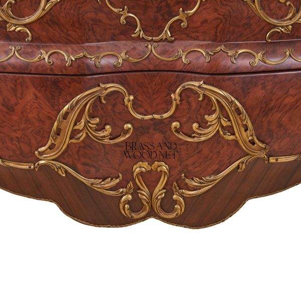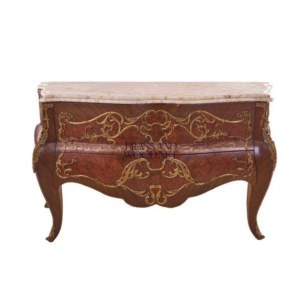 ตู้คอนโซลหินอ่อนคลาสสิกพร้อมตัวเครื่องไม้โค้งมนและรายละเอียดสีทองหรูหรา ตู้คอนโซลสุดหรูสำหรับตกแต่งภายใน