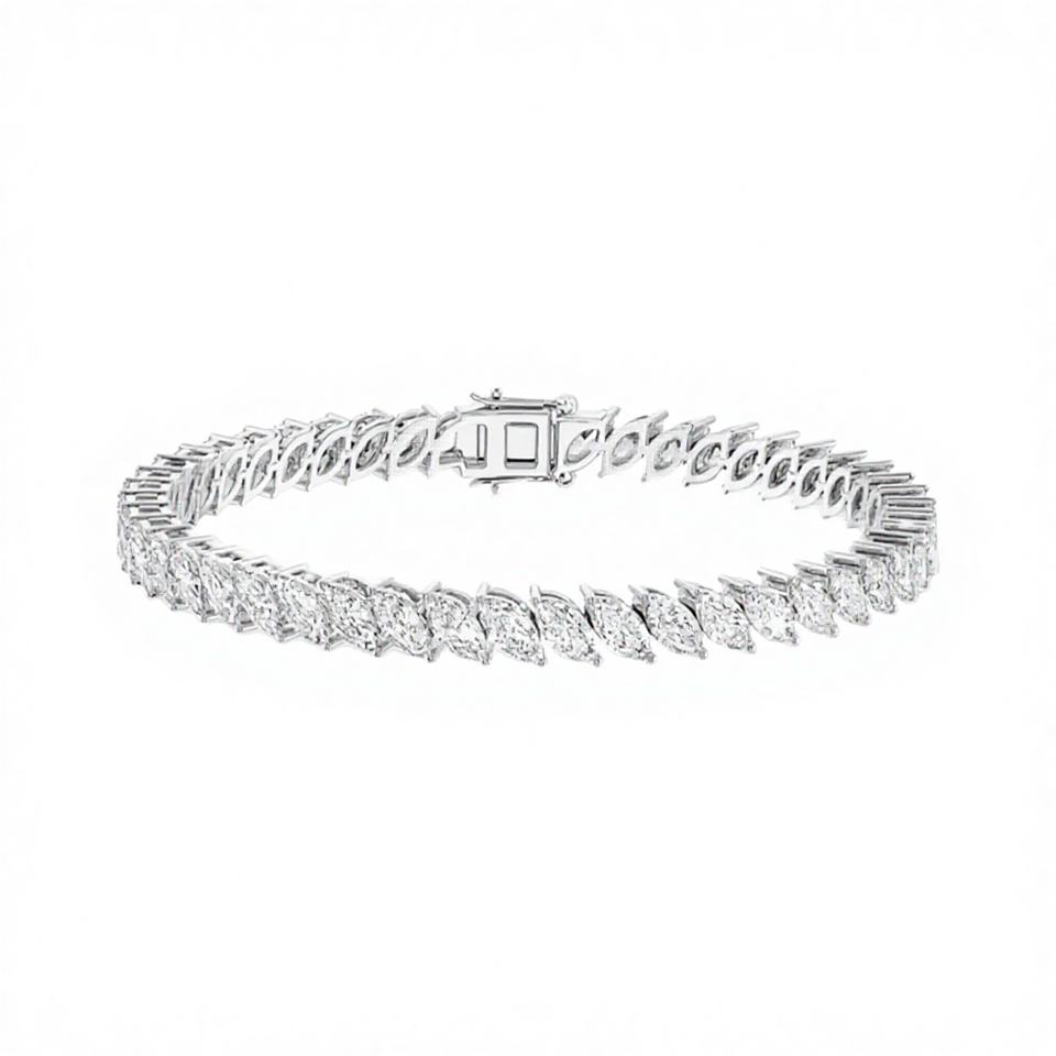 Classic Marquise Lab Grown Diamond Solitaire Tennis Bracelet 14 KT Gold White/Yellow/Rose VVS2 Clarity IGI Certified Trendy Gold