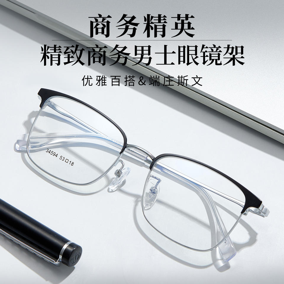 กรอบแว่นตาโลหะผสมทรงสี่เหลี่ยมสำหรับผู้ชาย รุ่นคลาสสิก ขนาด 53 มม. สวมใส่สบาย ผลิตที่ตานหยาง หมายเลขอะไหล่ 34594