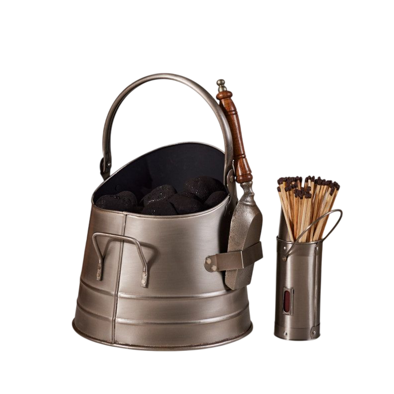 ถังถ่านหินโลหะคลาสสิก ถังถ่านหินสีโรสโกลด์ ดีไซน์ใหม่ล่าสุด ถังขี้เถ้า โลหะชุบสังกะสี สำหรับใช้ในบ้านและสวน