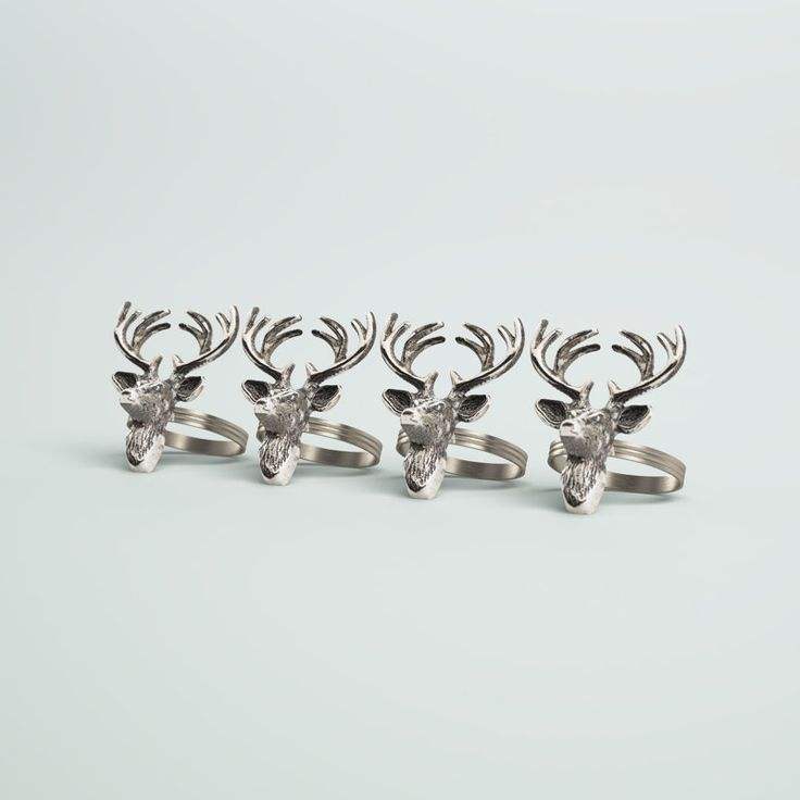 แหวนผ้าเช็ดปากกวางเรนเดียร์โลหะคลาสสิกออกแบบมาเพื่อเสริมธีมตารางฤดูหนาวด้วยรายละเอียดการตกแต่งที่สง่างาม