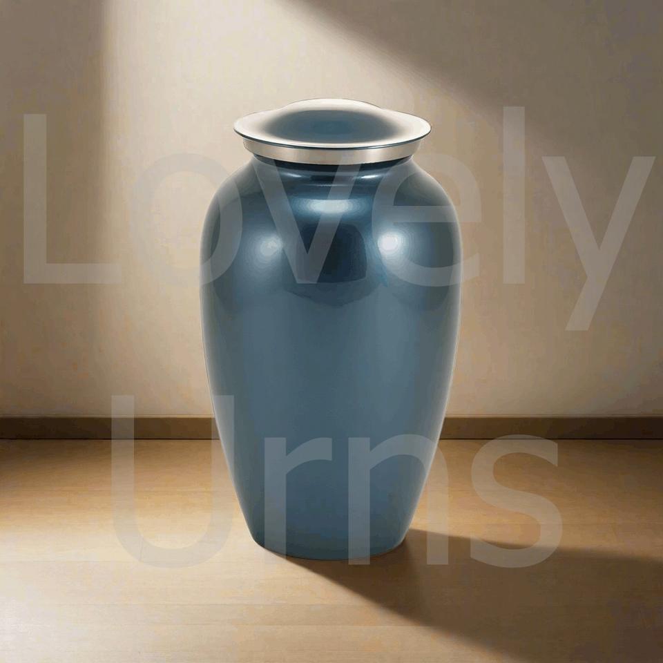โกศบรรจุอัฐิสีน้ำเงินคลาสสิกขนาดใหญ่ โกศโลหะสำหรับงานศพและอนุสรณ์สำหรับผู้ใหญ่ สำหรับใส่เถ้ากระดูกมนุษย์ ผู้ผลิตและจำหน่ายจากโรงงาน รับผลิตแบบ OEM ODM